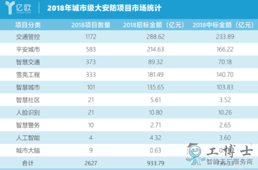 如目前人臉識別應用市場最大的安防領域,2018年大型安防項目累計中標金額約735億元,中標企業多以海康威視、浙江大華技術、華為等綜合型系統集成商為主。人臉識別項目除單獨招標外,還會包含在其他城市級大型項目中,而人臉識別企業卻很少具備綜合型項目的實施能力。