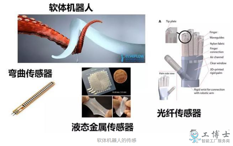 軟體機器人雖然適應性環境能力強,可以和人安全交互,但是為了能夠真正在生活生產中應用,能感知外界環境實為關鍵,有了傳感信息,機器人才能做出相應的對策,或者檢驗任務是否已經完成。毫不夸張的說,如果沒有有效的可靠的傳感方案,軟體機器人只能被限制在實驗室中做做展示了。