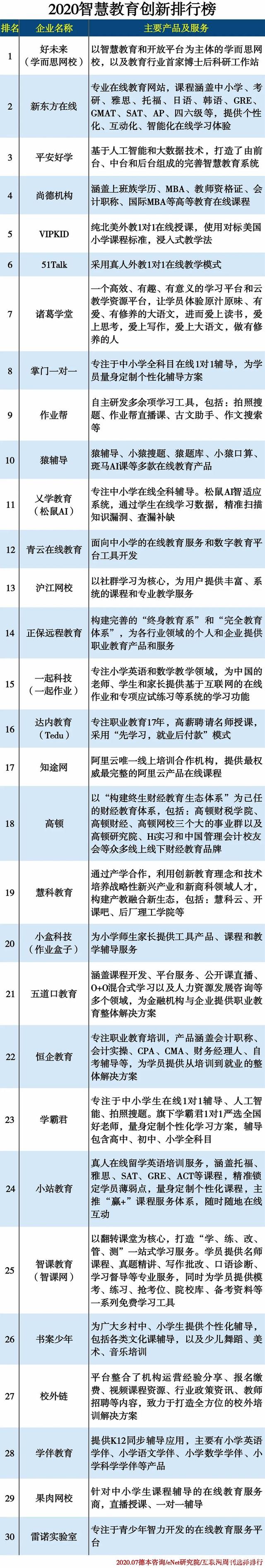 目前,我國資本雄厚的在線智慧教育平臺主打優勢都是從全球優選師資,通過互聯網向全世界的學生和專業人士提供個性化教學服務,以及大力投入人工智能在教育場景的應用,打造智慧教育,實現教育數字化。