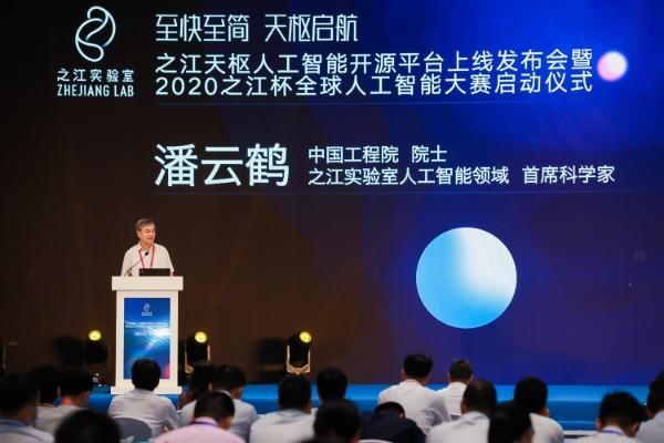潘云鶴院士在2020之江杯全球人工智能大賽啟動儀式上致辭。