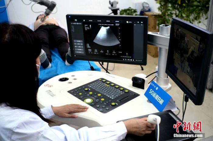 資料圖:10月26日,河南鄭州,國家遠程醫(yī)療中心工作人員展示5G遠程B超。