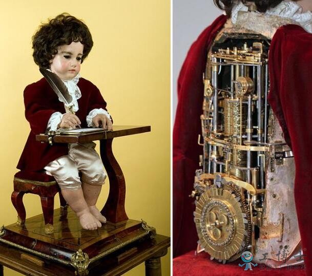 寫字機器人出現(xiàn)的時間,實際上比我們想象要早得多。早在 1774 年,瑞士制表師 Pierre Jaquet-Droz 做出了目前世界上最高齡的手寫機器人 The Writer。它外形是一個拿著鵝毛筆寫字的小男孩,每次能寫 40 個字母以內(nèi)的文字,偶爾還會停下來蘸一下墨水。