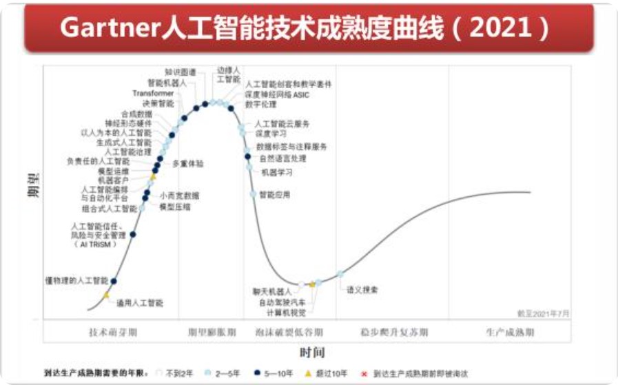 根據Gartner最新給出的數據,知識圖譜、自然語言處理等關鍵底層技術都將在5到10年內到達成熟期,屆時人工智能有望在認知智能層面實現大踏步的跨越,這便是行業的底氣所在。