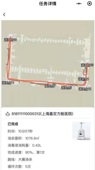 前線(xiàn)技術(shù)人員完成現(xiàn)場(chǎng)環(huán)境勘探以及消毒機(jī)器人的安全維護(hù),后端人員則全程采用無(wú)接觸化進(jìn)行遠(yuǎn)程操作部署。