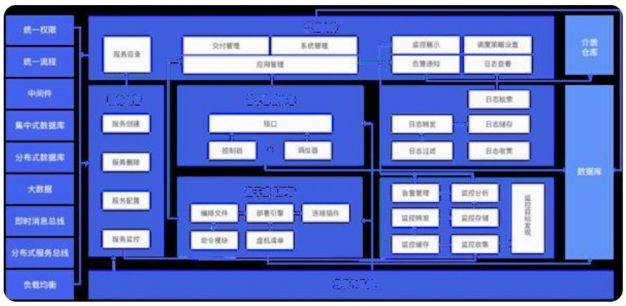 部署配置:將云基礎設施和云平臺組件的服務進行編排組裝,為業務應用和平臺組件提供部署能力,支持基于虛擬機和基于容器兩種部署方式。