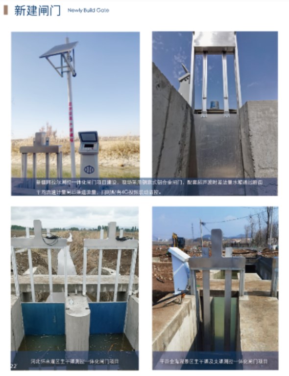 針對此類情況,我公司對原有閘門進行升級改造,保留原有閘體,通過增加包括電動智能控制啟閉裝置、太陽能供電裝置、智能終端控制系統和量水設施在內的智能設施,實現閘門的遠程控制和流量計量功能,最大限度降低項目成本和施工難度。