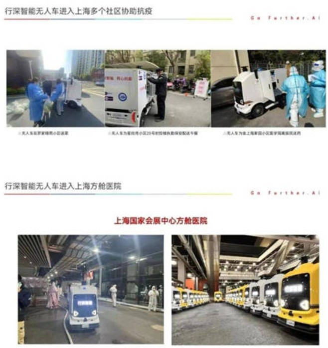 行深智能成立于2017年,是國內(nèi)領(lǐng)先的無人駕駛核心技術(shù)提供商及智慧物流產(chǎn)品供應(yīng)商。具備底盤、結(jié)構(gòu)、硬件和軟件的全棧自主研發(fā)與設(shè)計(jì)能力。現(xiàn)推出多款適用多種末端物流應(yīng)用場(chǎng)景的L4級(jí)無人車產(chǎn)品。近年來,行深智能與京東、美團(tuán)、華為、富士康、中國郵政、工商銀行、日本樂天等合作伙伴一起,將大批無人車產(chǎn)品及解決方案廣泛應(yīng)用在末端智慧物流場(chǎng)景,并實(shí)現(xiàn)量產(chǎn)以及規(guī)模化、常態(tài)化運(yùn)營(yíng)。行深智能無人車抗疫應(yīng)用場(chǎng)景有:封控社區(qū)、方艙醫(yī)院、國際健康醫(yī) 院。其中,封控社區(qū)無人配送方案,無接觸配送緩解最后一公里抗疫物資配送壓力。在上海,行深機(jī)器人現(xiàn)已服務(wù)過上海國家會(huì)展中心方艙醫(yī)院、上海臨港方艙醫(yī)院、上海世博方艙醫(yī)院、崇明花博方艙醫(yī)院、上海新國博方艙醫(yī)院。