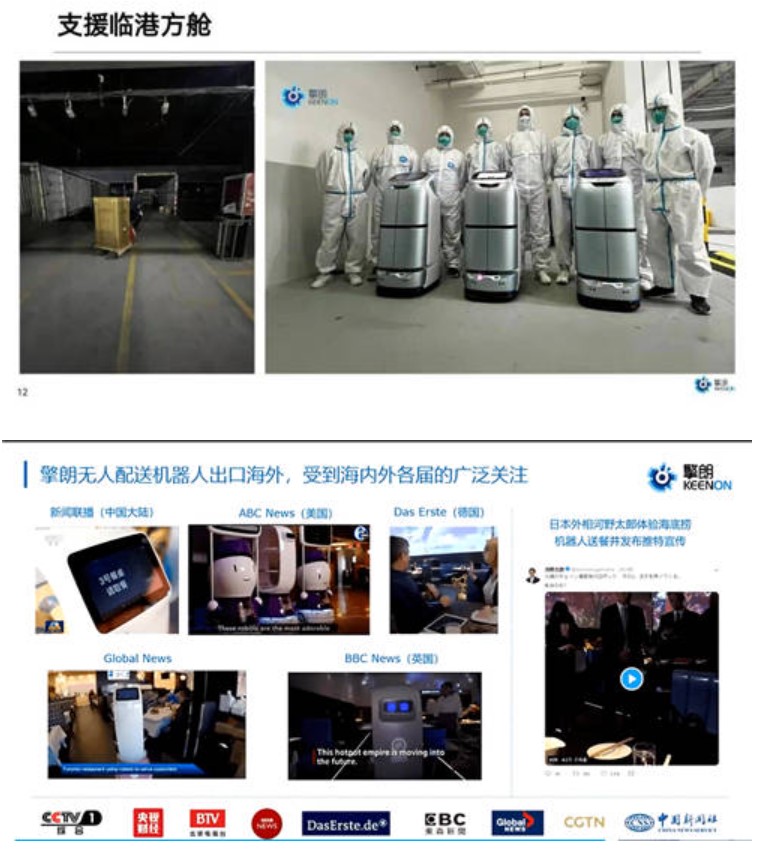 上海擎朗智能科技有限公司(KEENON)是一家致力于為全球企業(yè)提供智慧無人配送解決方案的人工智能企業(yè)。公司成立于2010年,總部位于上海,并在全國設(shè)立56個(gè)營(yíng)銷運(yùn)營(yíng)中心,通過應(yīng)用先進(jìn)的智能服務(wù)機(jī)器人和人工智能技術(shù),打造高效、穩(wěn)定、可靠、實(shí)用的解決方案,幫助全球各行業(yè)的企業(yè)提升服務(wù)效率,實(shí)現(xiàn)智能化升級(jí)。目前,公司服務(wù)客戶覆蓋餐飲、醫(yī)療、酒店、場(chǎng)館、商務(wù)辦公、社區(qū)養(yǎng)老、機(jī)場(chǎng)等場(chǎng)景,憑借穩(wěn)定可靠的產(chǎn)品、豐富的全球項(xiàng)目經(jīng)驗(yàn)與高效優(yōu)質(zhì)的售后服務(wù),擎朗智能已成為海底撈、外婆家、廣州酒家、全聚德、索菲特酒店、威斯汀酒店、希爾頓酒店等眾多國內(nèi)外知名品牌的合作伙伴 。其中,擎朗W3智能配送機(jī)器人主要負(fù)責(zé)臨港方艙醫(yī)院餐品、藥品以及日用品的運(yùn)輸和配送,7*24小時(shí)無間斷工作,有效降低醫(yī)護(hù)人員體力工作,讓他們更專心投入在方艙醫(yī)院的管理和治療工作,同時(shí)無接觸配送減少人際接觸,保障隔離和醫(yī)護(hù)人員的安全。