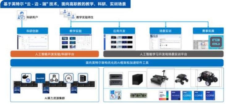本次,英特爾攜手武漢英諾維森推出的“端邊云”一體化解決方案包含人工智能開發實驗平臺、管理節點平臺、算力節點平臺、人工智能學習套件、自動駕駛實訓、工業缺陷檢測實驗設備等,可全方位強化課程體系、教學平臺、實驗實訓環境等軟硬件基礎設施建設,進而在幫助學生熟練掌握人工智能基礎知識的同時,增強實踐創新能力,進而構建創新型AI人才培養流程的閉環。