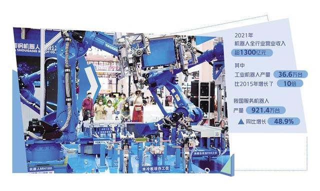 “過去是手機或者汽車行業用機器人多,現在新能源、服務業以及農業領域都開始應用機器人。”王田苗說,過去是大企業用機器人,現在中小企業甚至只有幾十人規模的企業也在應用。統計顯示,2021年我國制造業機器人密度達到每萬人超300臺,比2012年增長約13倍。