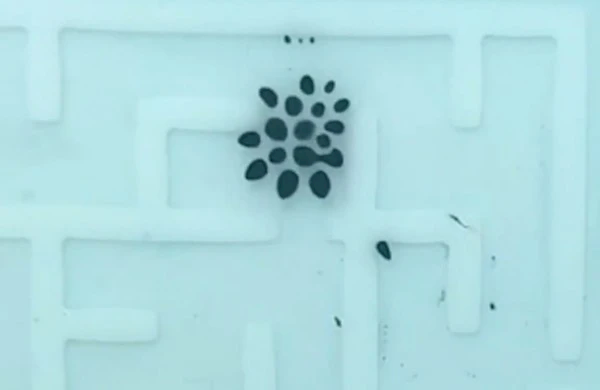 有趣的是,科學家能夠利用磁場將這種機器人分離成一組可達微米級的機器人,然后調整磁場又能將這些更微小的機器人重新組合在一起。