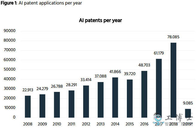 為了識別與AI相關的專利,IPlytics對448684項AI專利進行了歸類與分析,他們將這些專利劃分為了204947個專利族。