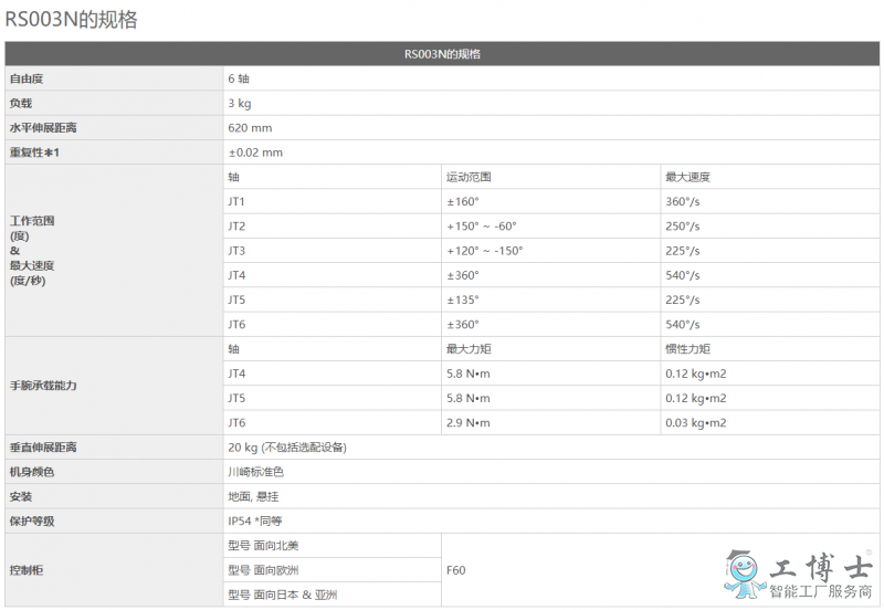 擁有該系列機器人*輕的3kg負載及緊湊型手臂!