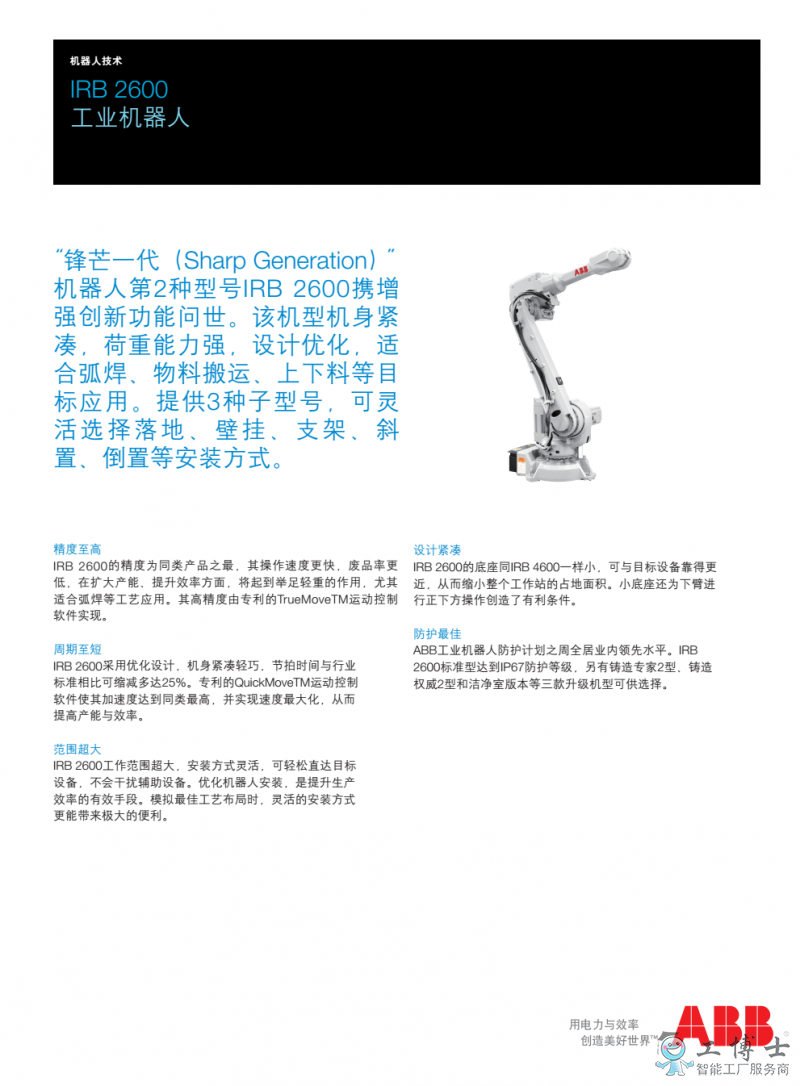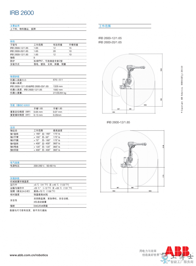 產(chǎn)品詳情:ABB機器人IRB 2600-12/1.65【負載:12kg,臂長:1650mm】
