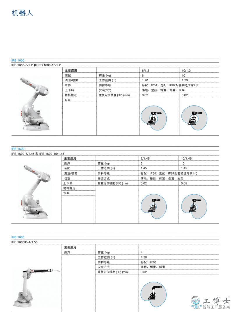 主要應用:弧焊、裝配、清潔/噴霧、切割、上下料、物料搬運、包裝