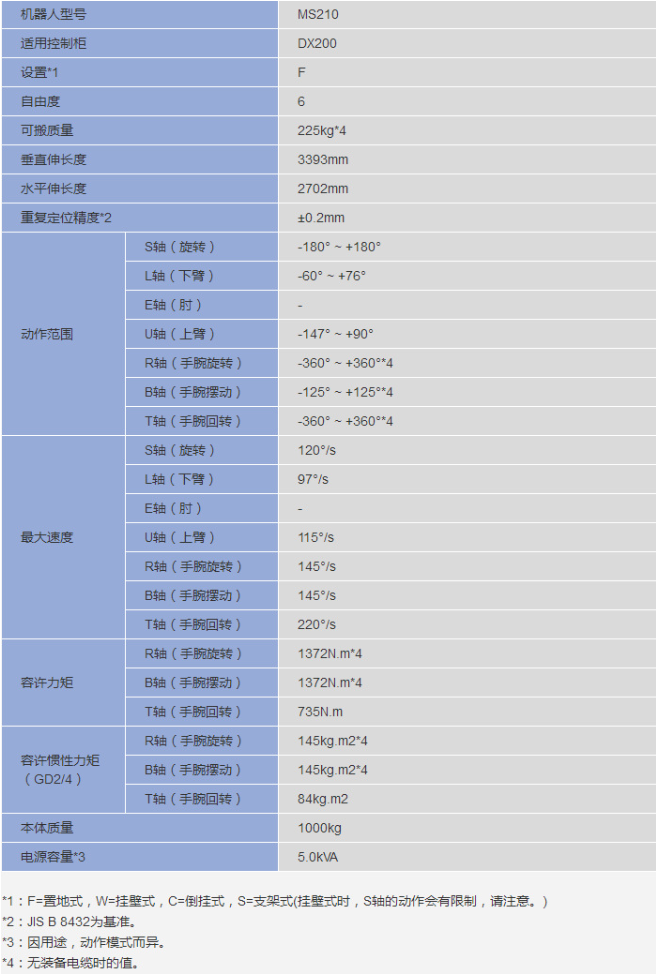 安川YASKAWA機(jī)器人MS210 負(fù)載:225Kg