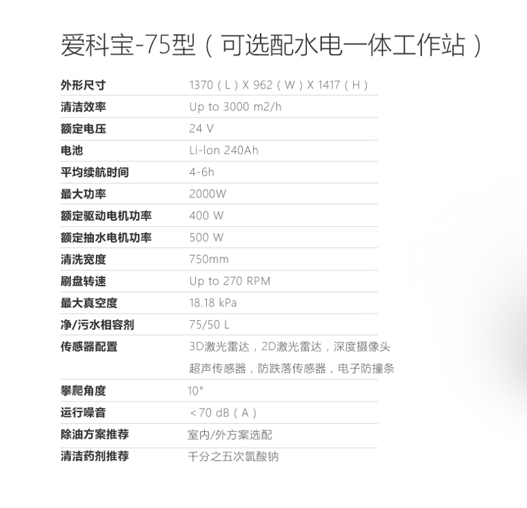 一款集洗地、吸干、吸污、除菌、降灰于一體的智能洗地機設備,廣泛應用于露天廣場、室內停車場、機場、車站、購物中心、物流倉庫等場景,安全、性能卓越