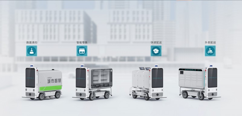 坎德拉機器人Sunny新一代無人駕駛物流車可承擔5km范圍內的末端配送、新零售運營、垃圾清掃、安檢巡防等任務,能夠在室外、室內及半封閉環境自由穿行。產品具備自動卸裝柜、實時避障、自動駕駛、云端地圖建模、多車智能調度等特點,前置大屏具有人機交互和廣告展示的功能。