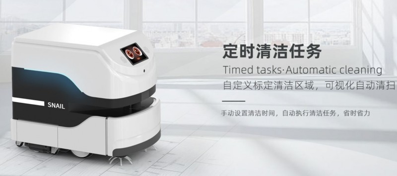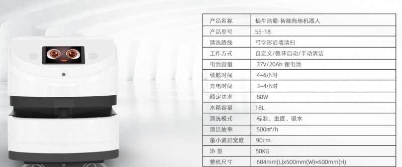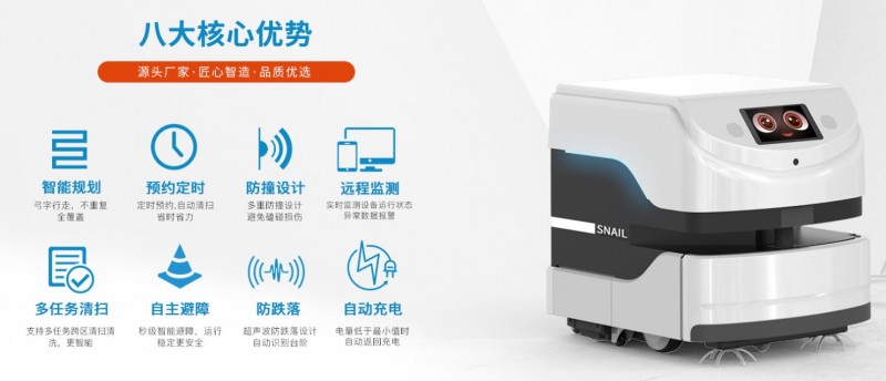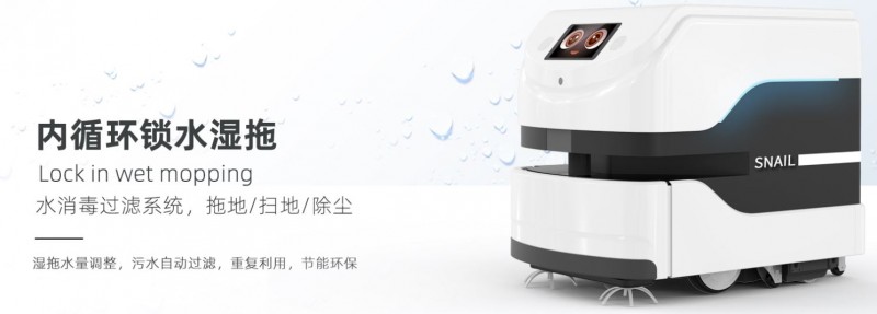 銳曼蝸牛潔霸一拖地機器人Snail Sweeper cleaning robot,每爬一步,留下的都是閃閃發光的足跡,超強吸水高分子材料,全局智能規劃,清潔更徹底,支持4萬平大場景清潔拖洗。
