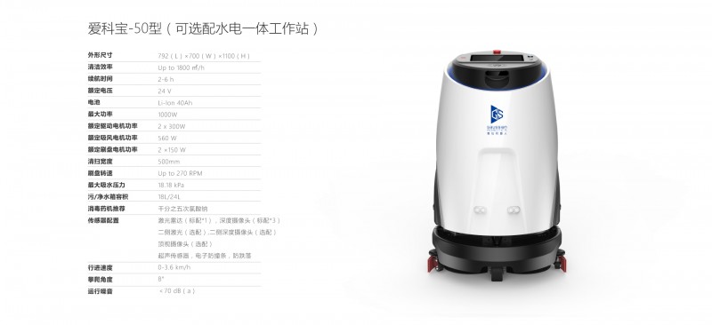 高仙商用清潔機器人是一款集洗地、吸干、推塵、吸污、除菌、降灰于一體的智能洗地